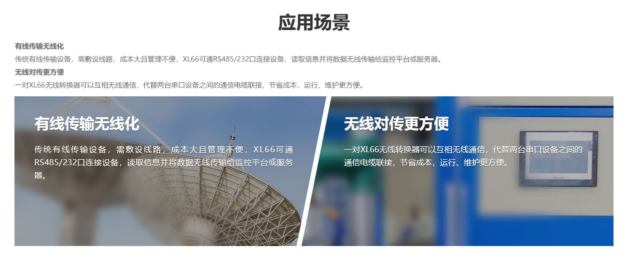 3、較遠距離的串口通信,特別敷設電纜、光纖不便,施工成本高的場景,選擇XL6666串口無線轉換模塊,省成本、工期短,運行、維護也更簡單方便。