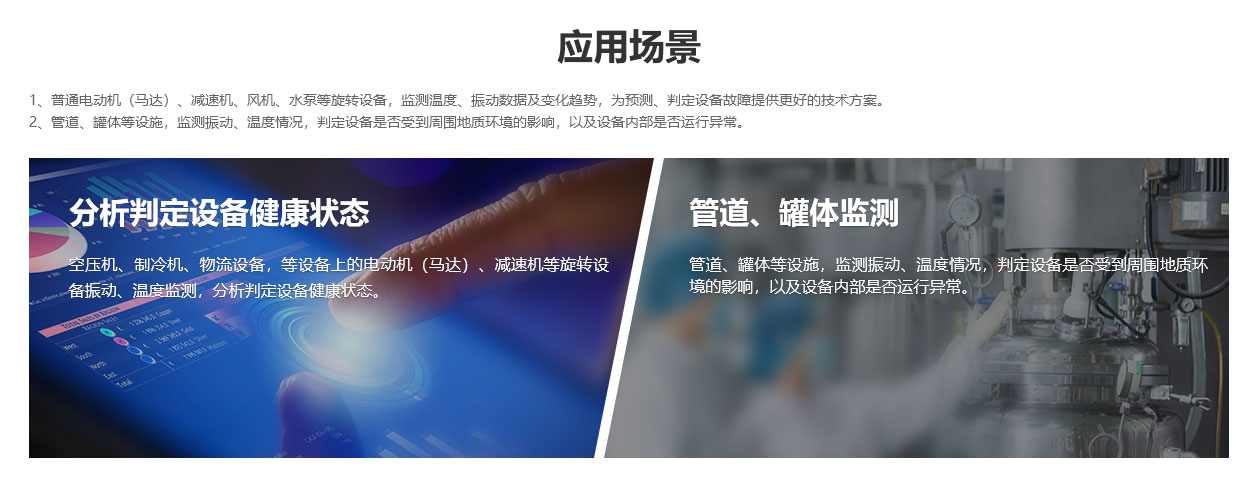 1、普通電動(dòng)機(jī)(馬達(dá))、減速機(jī)、風(fēng)機(jī)、水泵等旋轉(zhuǎn)設(shè)備振動(dòng)、溫升監(jiān)測(cè);
