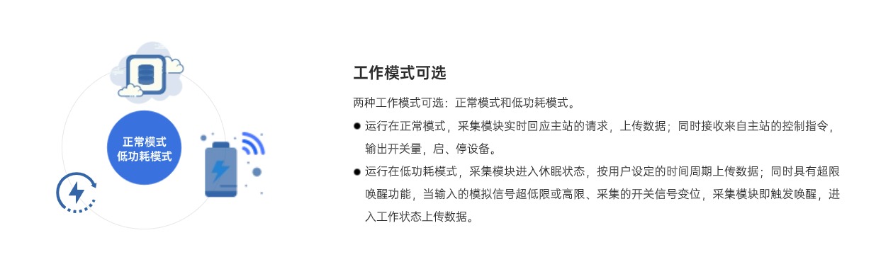 XL65采集模塊,用于監(jiān)測點分散、數(shù)量少、供電不方便的場景。電池供電,變位、超限觸發(fā)功能,更適用于變送儀表信號、開關(guān)接點信號采集。