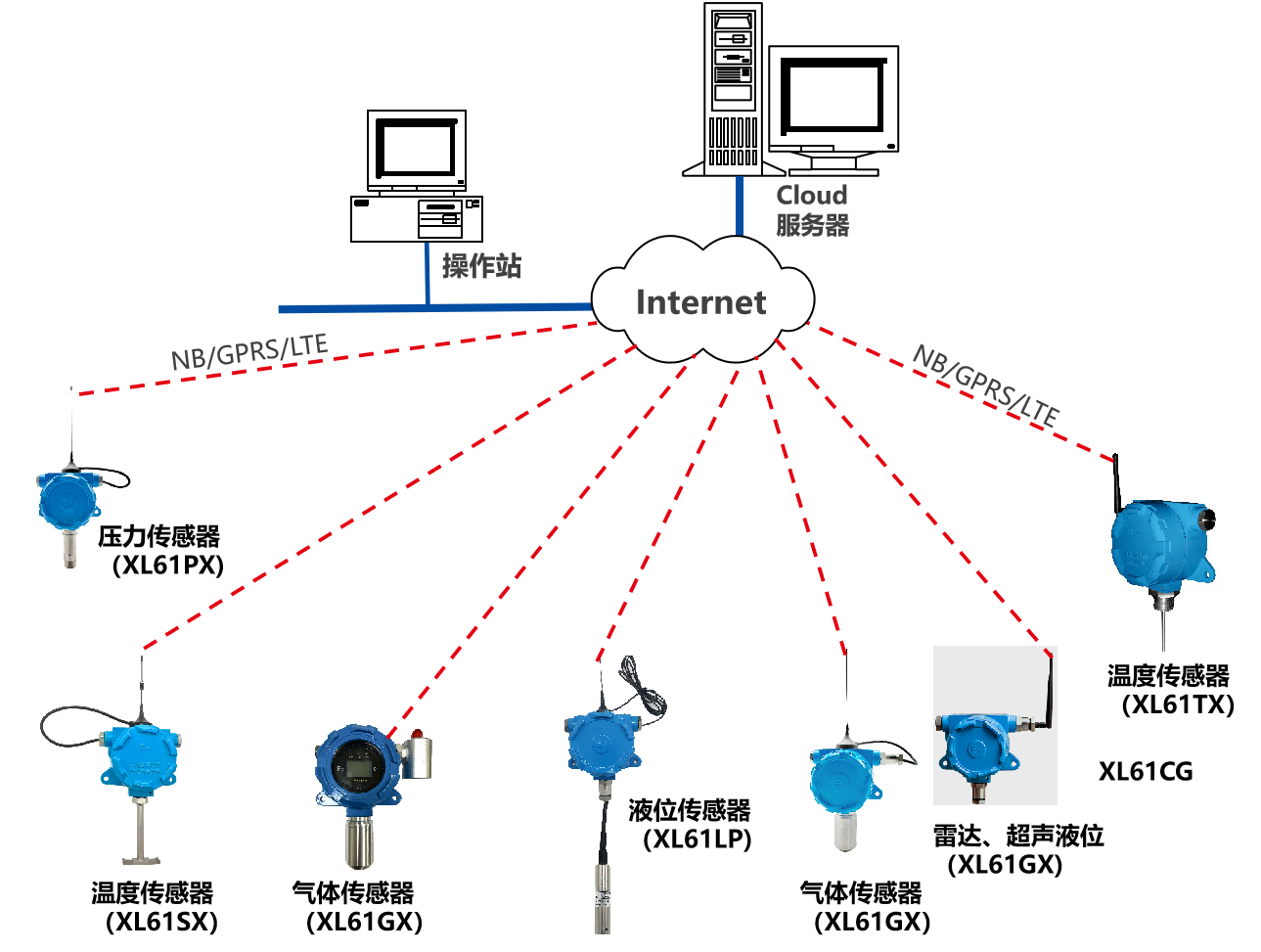 XL90,將數(shù)據(jù)上傳給企業(yè)內(nèi)部的多個(gè)系統(tǒng)軟件平臺(tái);通過(guò)LTE(4g)/NB/GPRS將數(shù)據(jù)上傳至云服務(wù)器