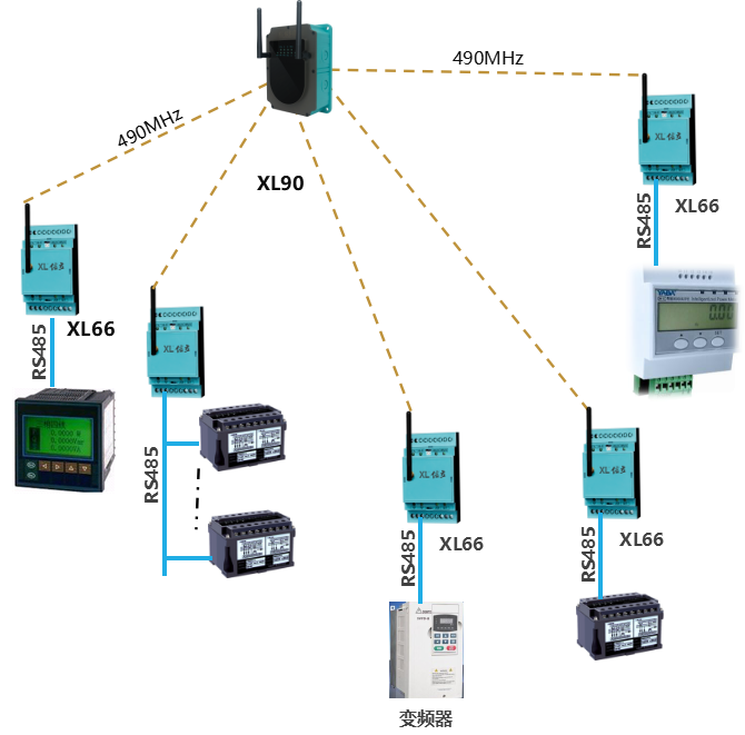 1臺XL66智能轉換器,通過RS485總線,聯接多臺電力監控表或其它裝置,建議不超過16臺