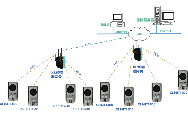 XL90或XL95物聯(lián)網(wǎng)關(guān)作為無線接收端,進(jìn)行協(xié)議轉(zhuǎn)換,數(shù)據(jù)轉(zhuǎn)發(fā)。