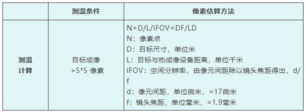 測溫部位的目標成像:>5*5個像素,測溫傳感器即可測溫。