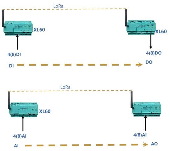 信號(hào)透?jìng)鳎菏汀⒒ぁ⒁苯鸬裙S,選擇一對(duì)XL60,將現(xiàn)場(chǎng)儀表的電流、電壓、開(kāi)關(guān)等信號(hào),無(wú)線對(duì)傳到PLC或控制、顯示儀表,減少直接敷設(shè)電纜傳輸信號(hào)的麻煩和施工成本。