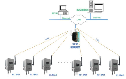 XL13AD無線壓差傳感器通過LoRa無線傳輸數(shù)據(jù)至XL906物聯(lián)網(wǎng)關(guān),網(wǎng)關(guān)可選EthernetWi-Fi4G等多種方式將壓差數(shù)據(jù)傳輸至監(jiān)控平臺。