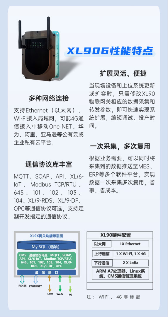 XL90物聯(lián)網(wǎng)關(guān)是信立工業(yè)物聯(lián)網(wǎng)(XloT)的核心,是節(jié)點和平臺之間的通訊樞紐和橋梁,啟動、管理通信網(wǎng)絡(luò),協(xié)調(diào)節(jié)點通信,實現(xiàn)通信管理數(shù)據(jù)采集、協(xié)議轉(zhuǎn)換轉(zhuǎn)發(fā)等,構(gòu)建更穩(wěn)定、更可靠、更安全的無線通信網(wǎng)絡(luò)。