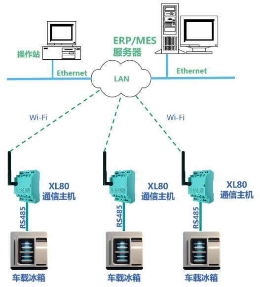 綜合考慮現(xiàn)場(chǎng)監(jiān)測(cè)需求,選用 XL802 通信主機(jī) ,通過 RS485 采集冰箱壓縮機(jī)、加熱塊、風(fēng)扇等部件的電壓、電流等電氣參數(shù),進(jìn)行 協(xié)議轉(zhuǎn)換 并 無線遠(yuǎn)傳 。可通過 XBUS 總線, 擴(kuò)展信號(hào)輸入、輸出模塊 ,滿足現(xiàn)場(chǎng)較多參數(shù)采集的情況。
