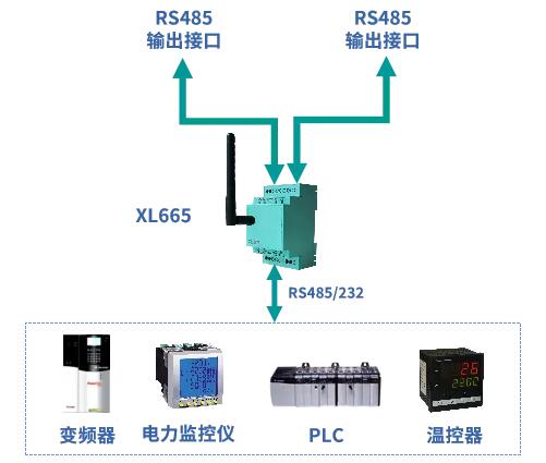 1、經由XL665無線轉換器輸出的RS485信號,可接入任何支持RS485及儀表通信協議的設備