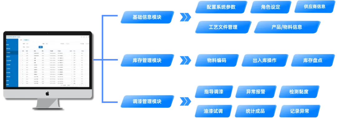 在傳統(tǒng)的調(diào)漆和制漆過(guò)程中,過(guò)于依賴個(gè)人經(jīng)驗(yàn)技能,靠師傅帶徒弟的方式培訓(xùn),人為因素容易導(dǎo)致調(diào)漆質(zhì)量不穩(wěn)定、風(fēng)險(xiǎn)大;漆料選用、使用、調(diào)漆操作等都依賴人工記錄,導(dǎo)致質(zhì)量問(wèn)題無(wú)法追溯、漆料浪費(fèi)大、統(tǒng)計(jì)數(shù)據(jù)不準(zhǔn)確等問(wèn)題。